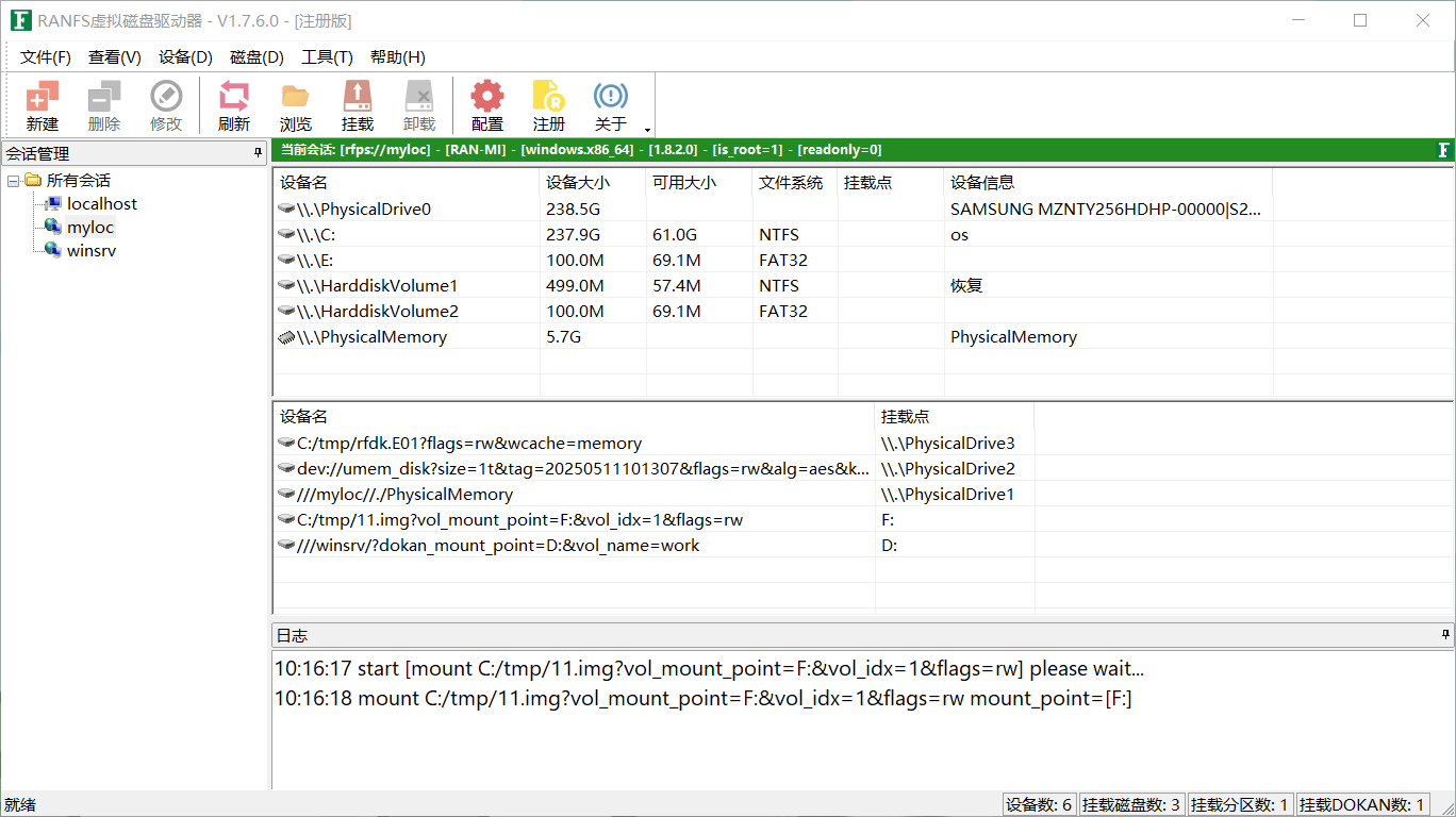 RFDK,可以把网络及本地设备、内存、文件等挂载为本地虚拟磁盘或分区。同时提供许多其它功能,比如远程导出镜像 快速同步镜像等,借助于Windows上丰富的软件工具,实现对远程设备的数据读写、恢复、取证等操作。